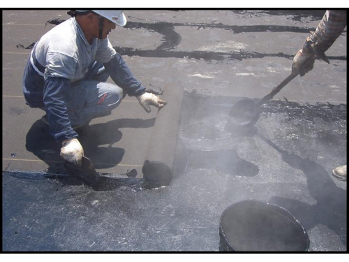 3.熱熔膠中夾抗拉油毛氈(五皮/七皮工法)